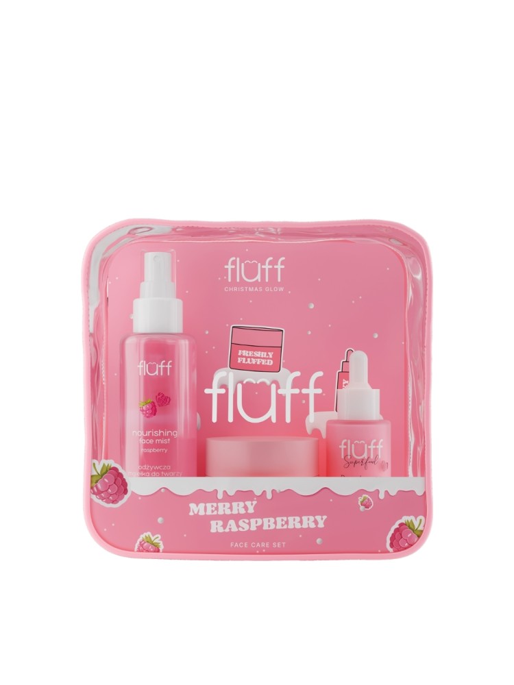 Το Fluff Face Care Set MERRY RASPBERRY περιέχει 3 από τα Best Seller προϊόντα της σειράς Very Lovely Oh με άρωμα βατόμουρο. Η ρουτίνα περιποίησης με άρωμα κεράσι θρέφει σε βάθος την επιδερμίδα, αφήνοντάς την απαλή και λεία. Τα έλαια αβοκάντο και γλυκού αμυγδάλου θρέφουν εντατικά, ενώ το εκχύλισμα σμέουρου και η πανθενόλη καταπραΰνουν και υποστηρίζουν την αναγέννηση της επιδερμίδας. Το εκχύλισμα Kombucha λειαίνει και αποκαθιστά την υγιή λάμψη της επιδερμίδας, ενώ οι πρωτεΐνες ρυζιού ενισχύουν το φυσικό προστατευτικό φραγμό της.