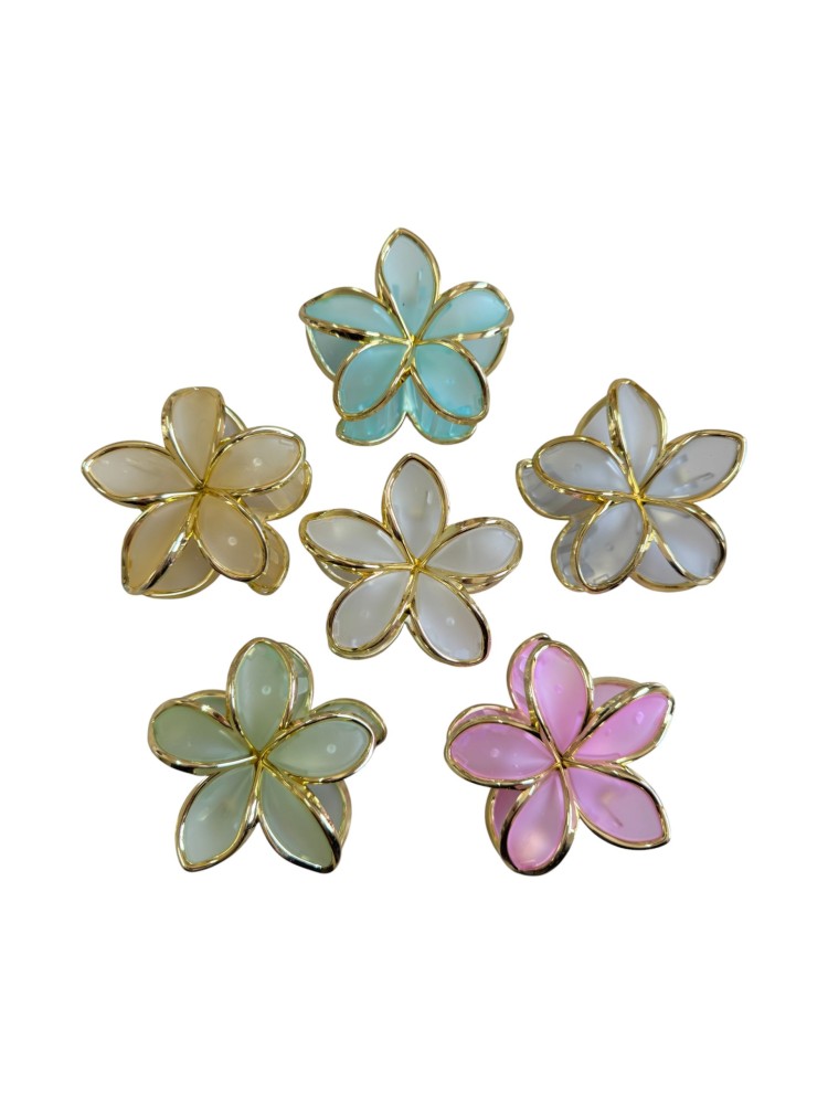 Ro-Ro Accessories Κλάμερ Μαλλιών Ματ Λουλούδι με Χρυσό περίγραμμα 7.5cm (02-0363)
